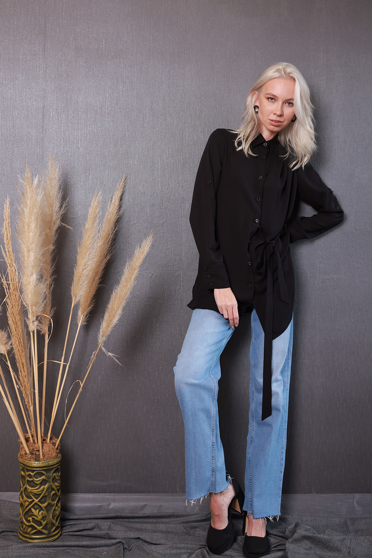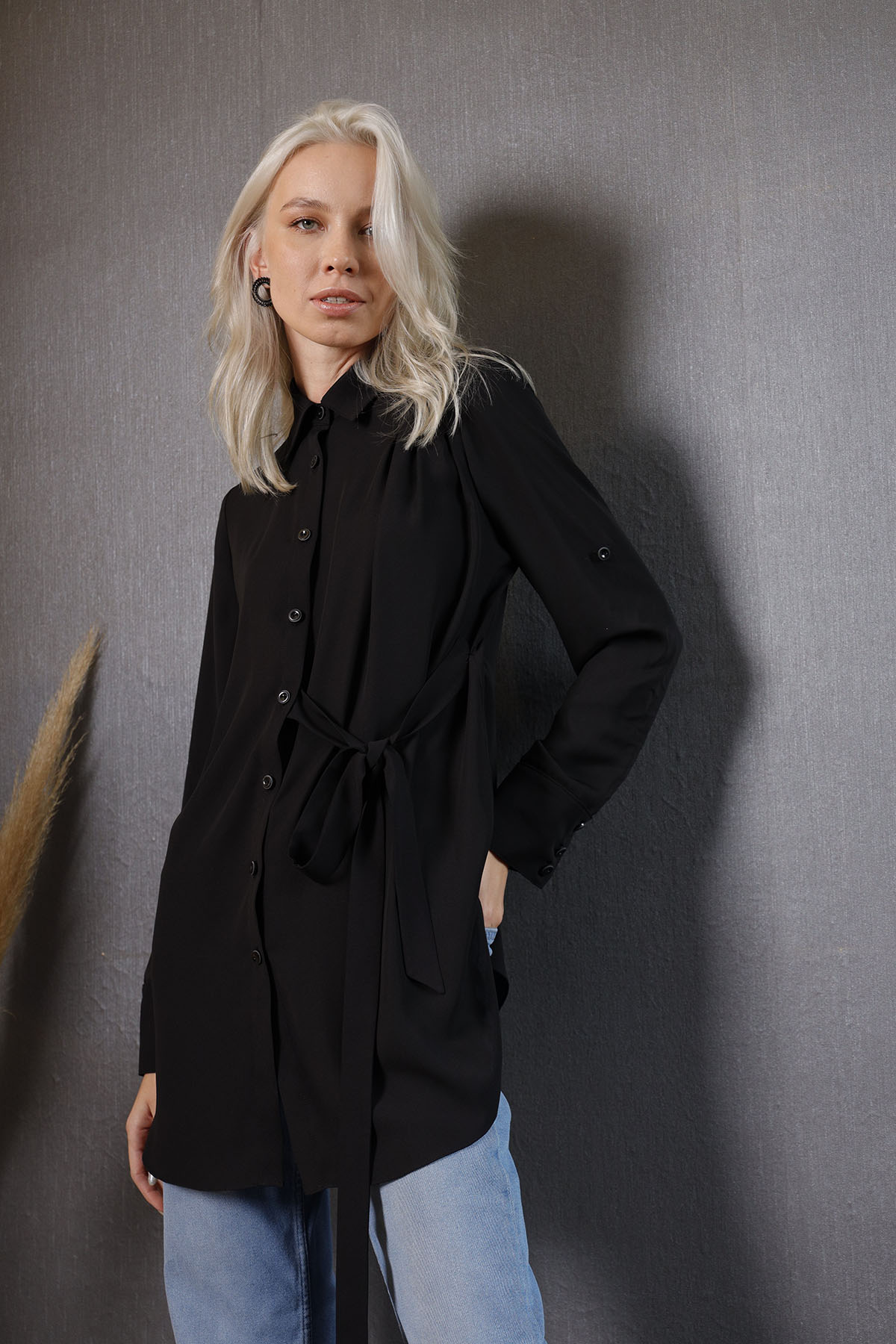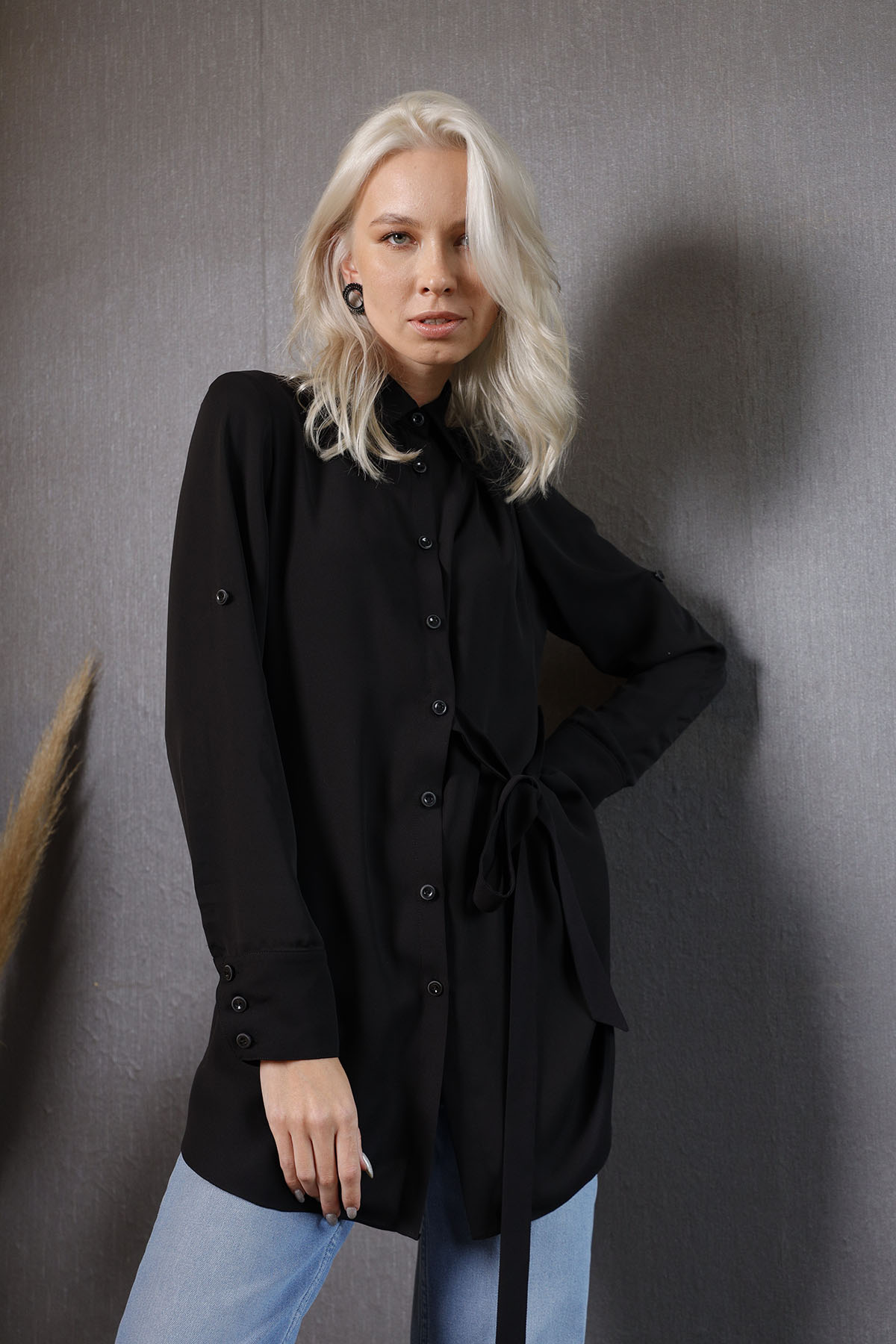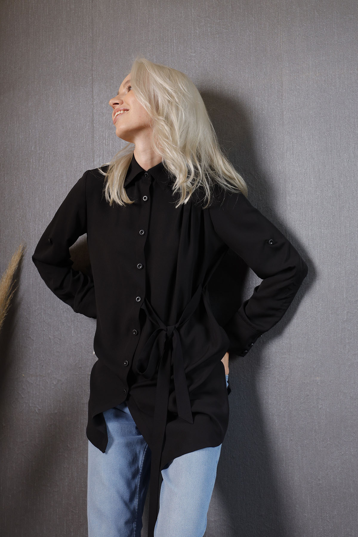 Black Shirt koleksiyonumuzun parçalarından olup, ön patı ve manşetler ile kollarında özel düğmelerle süslenmiştir.