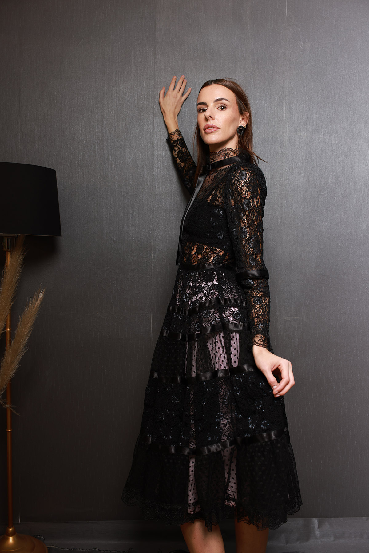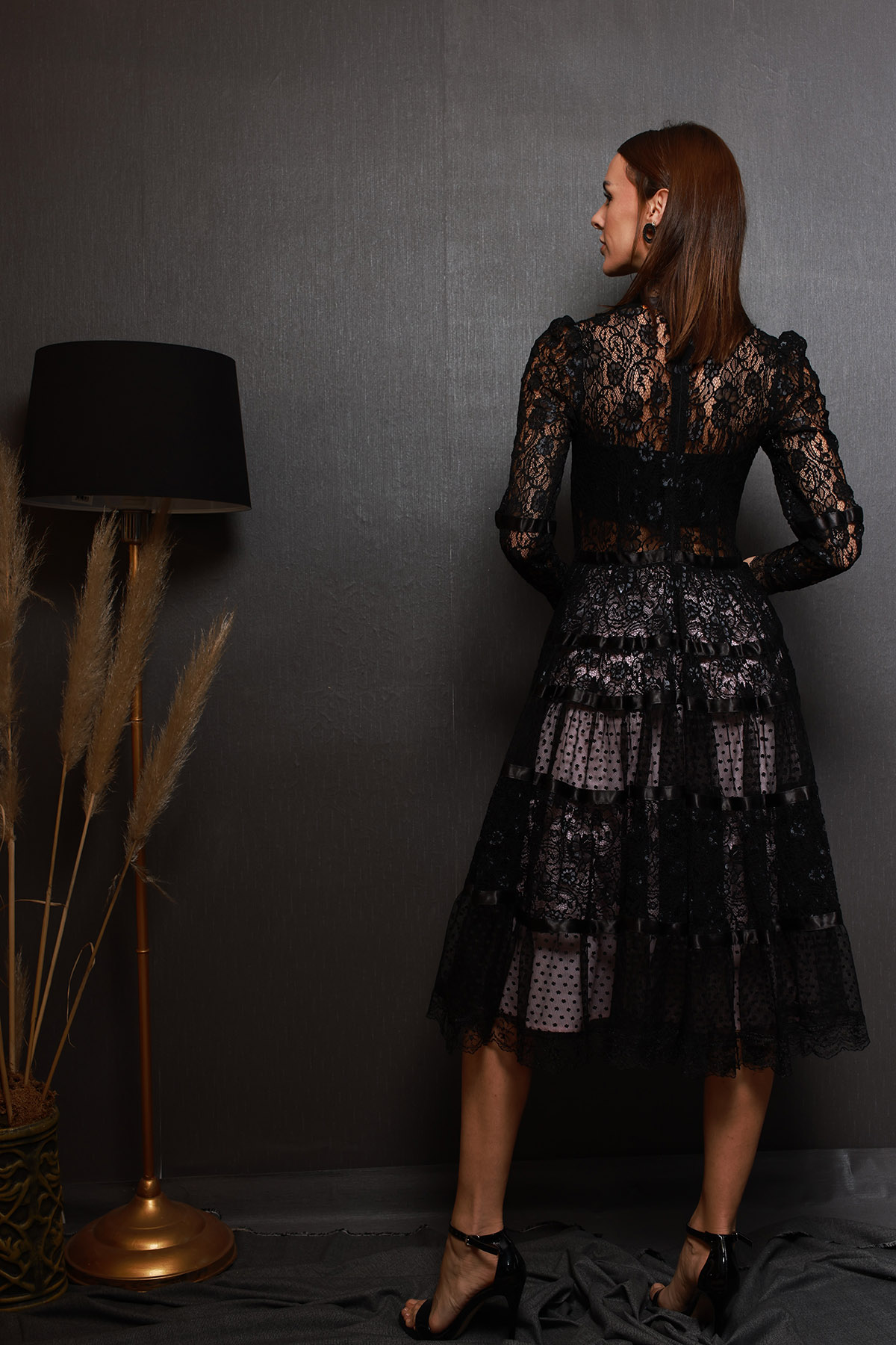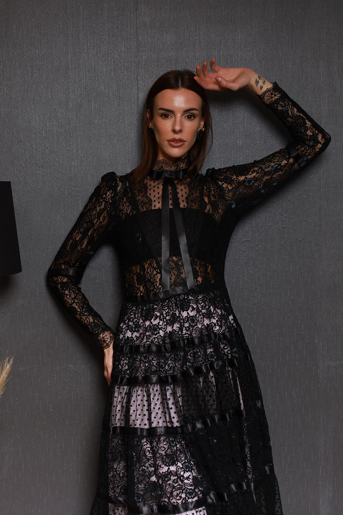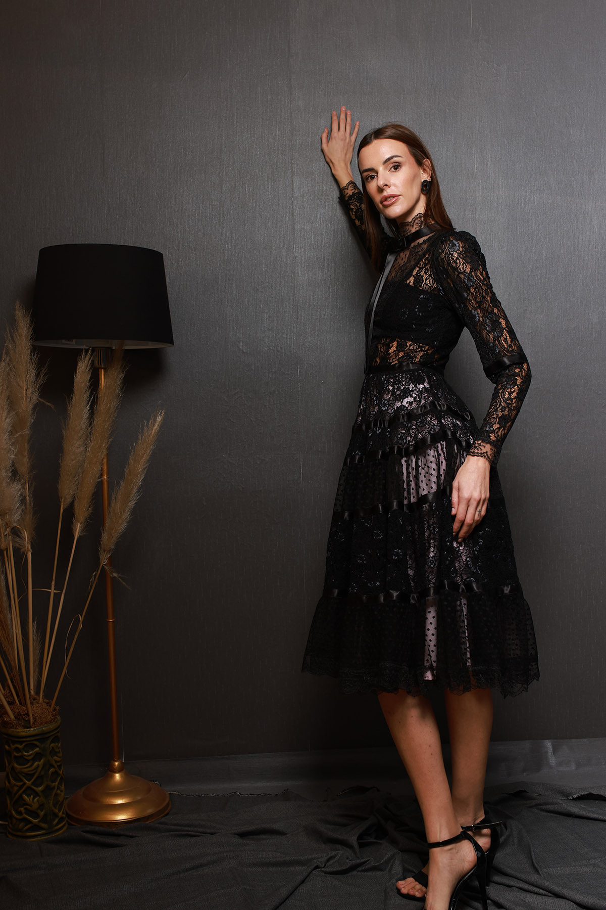 Lace Siyah Dress Özel Tasarım Eleganze Casual Elbise