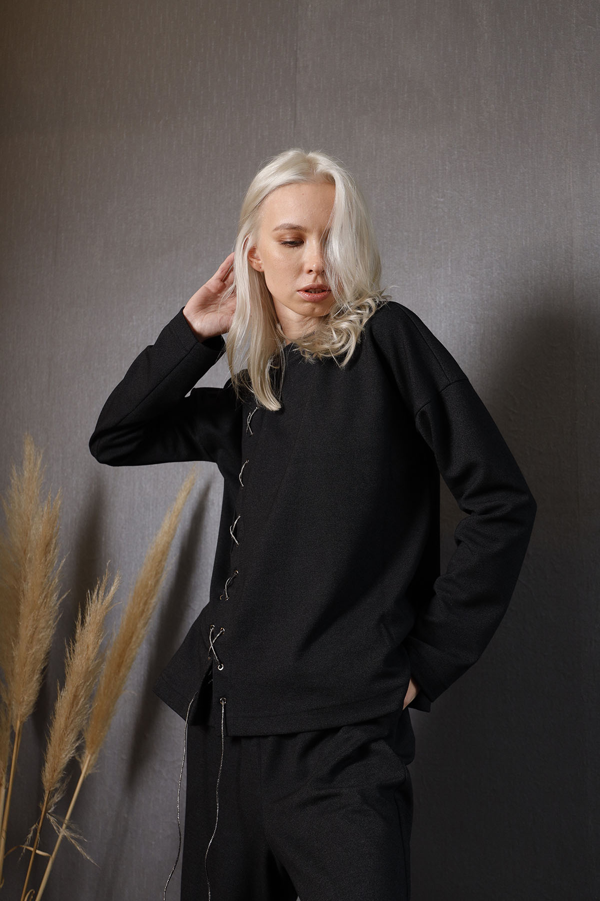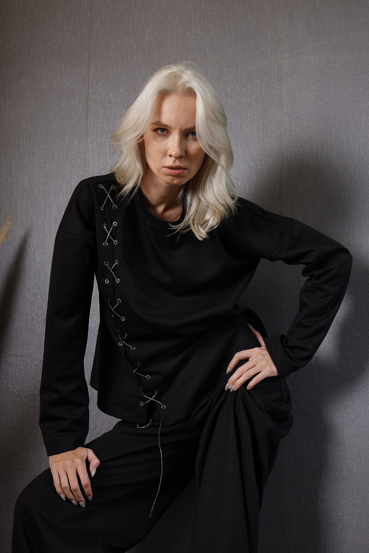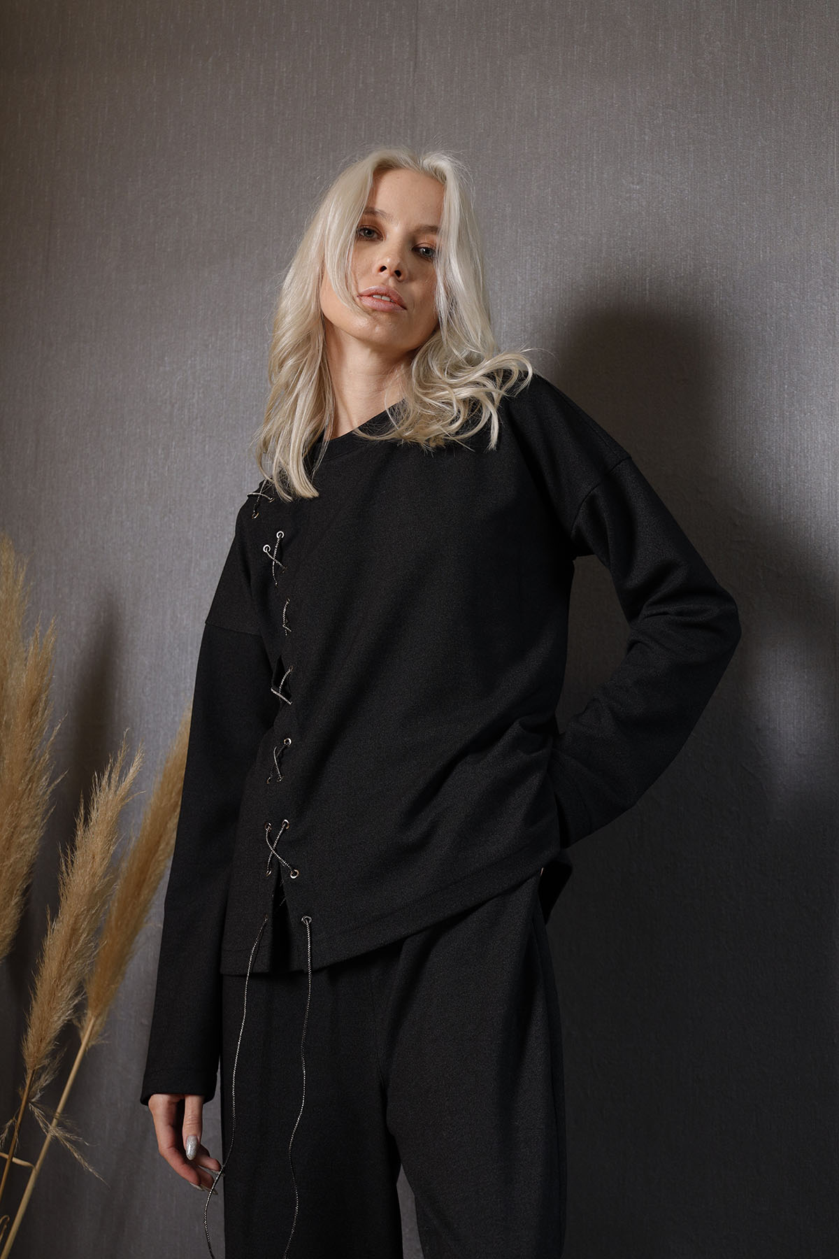 • Lidya Black Shirt Çıtçıtlı Bady Şeklinde Gömlek