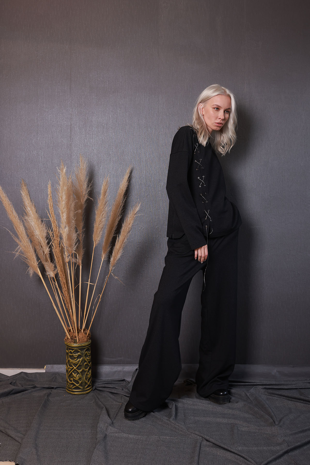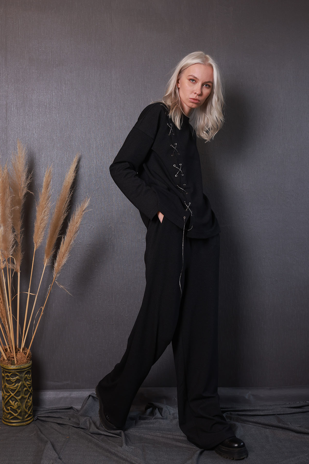 Eşofman altı;beli lastikli ve geniş paçalıdır.