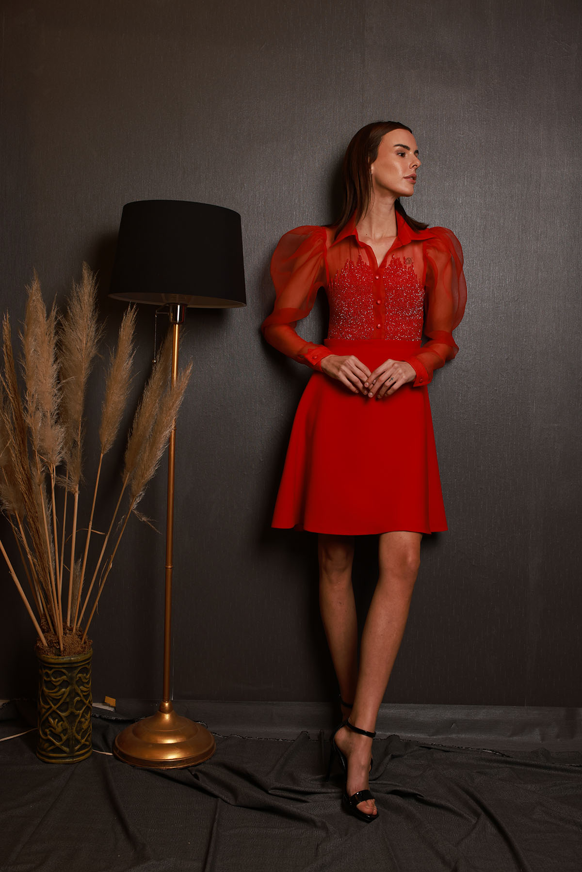 Mini boy ve kolları manşetlidir. Çok özel ve davet, toplantıların aranan zamansız bir parçadır.