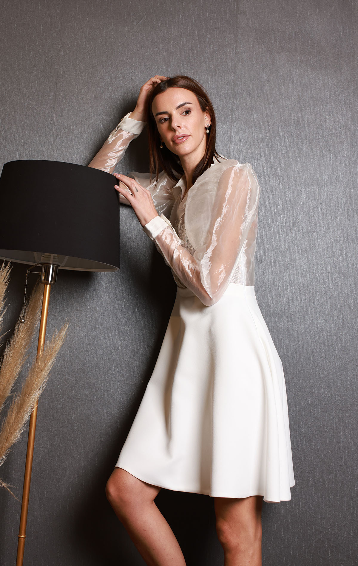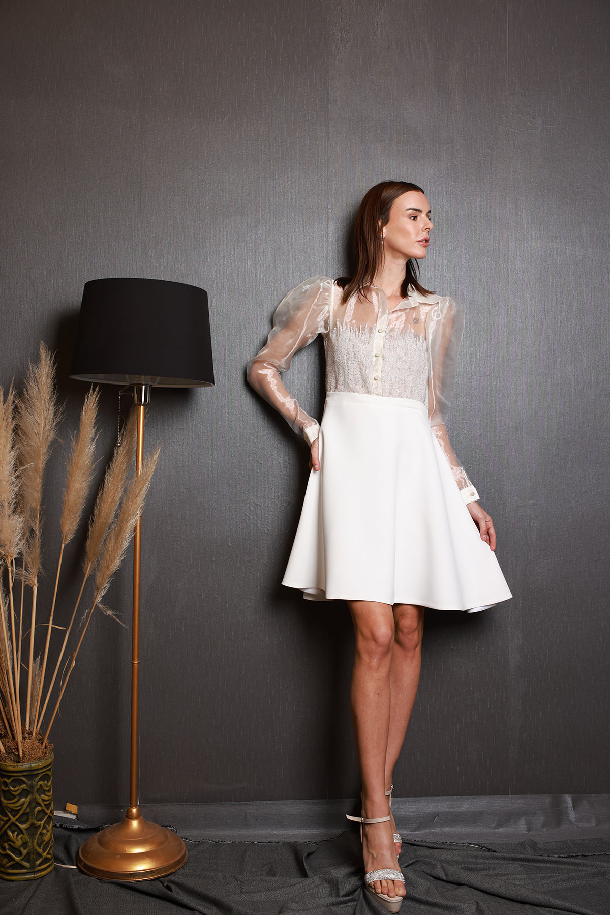 Mini boy ve kolları manşetlidir. Çok özel ve davet, toplantıların aranan zamansız bir parçadır.
