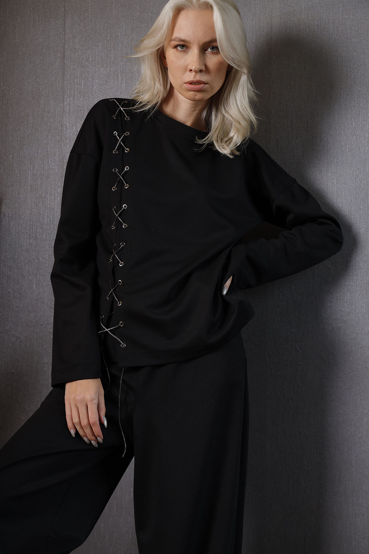 • Lidya Black Shirt Çıtçıtlı Bady Şeklinde Gömlek
